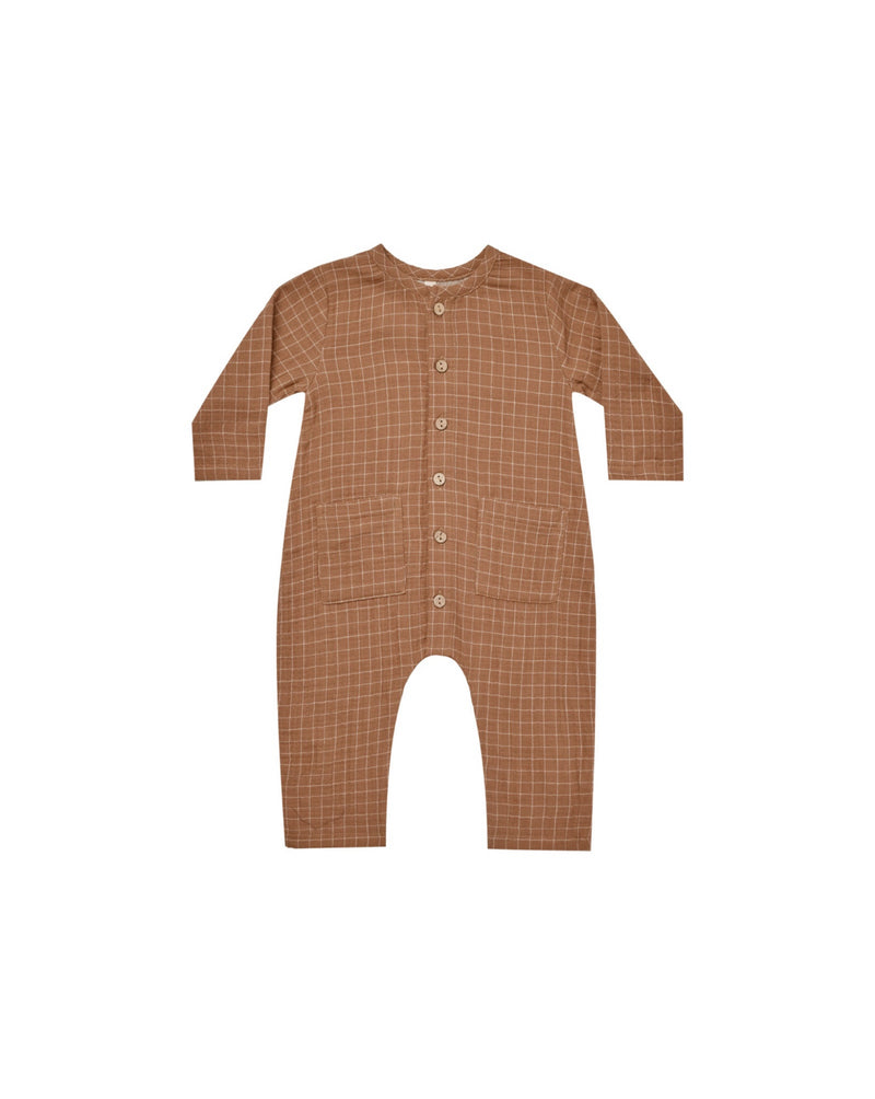 POCKETED WOVEN JUMPSUIT || CINNAMON GRID
